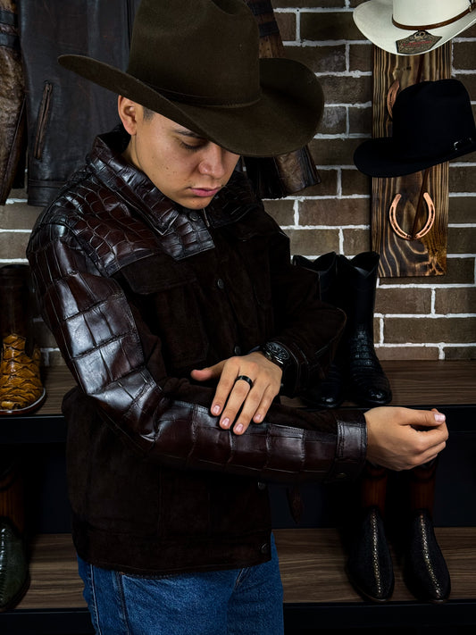CHAMARRA COCODRILO Y GAMUZA DARK BROWN