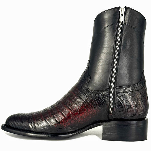 EMMA RED BLACK COCODRILO FUSCUS BOOTS OVAL