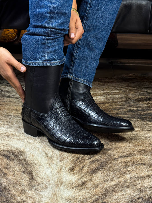 EMMA BLACK COCODRILO FUSCUS BOOTS OVAL