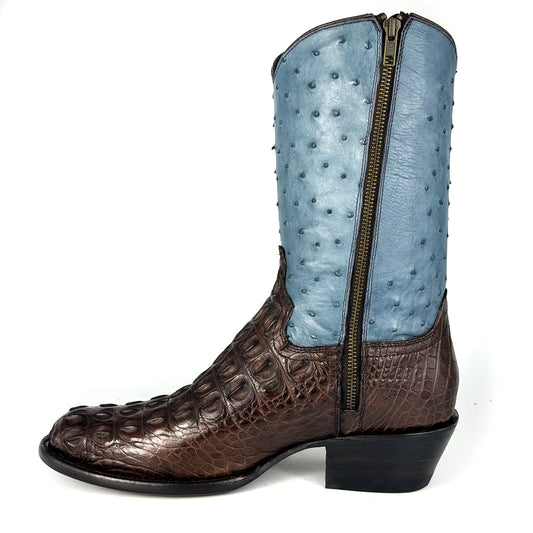 EMMA HIGH BROWN BLUE LOMO COCODRILO Y AVESTRUZ BOOTS OVAL
