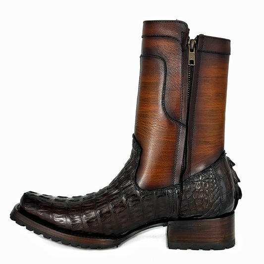 EDGAR BROWN CROCODILE BOOTS